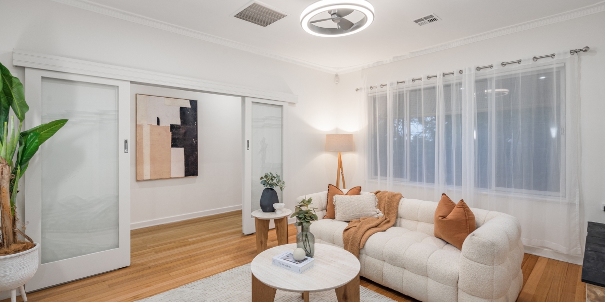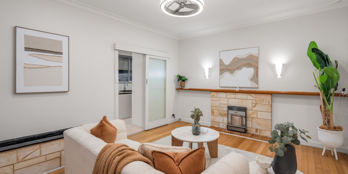 Built in enduring double-brick, the home has been thoughtfully refreshed for modern living. A wide central hallway and lofty 2.8m (approx.) ceilings create an immediate sense of scale, while three well-proportioned bedrooms provide comfort and privacy.