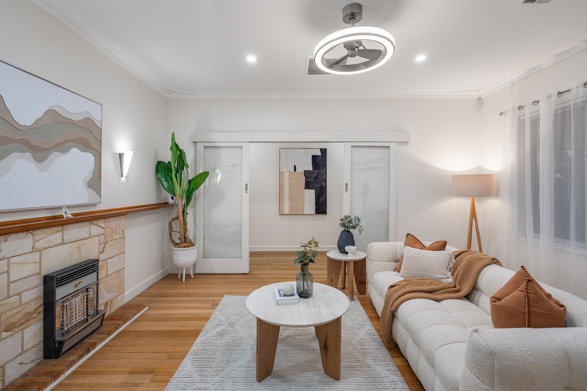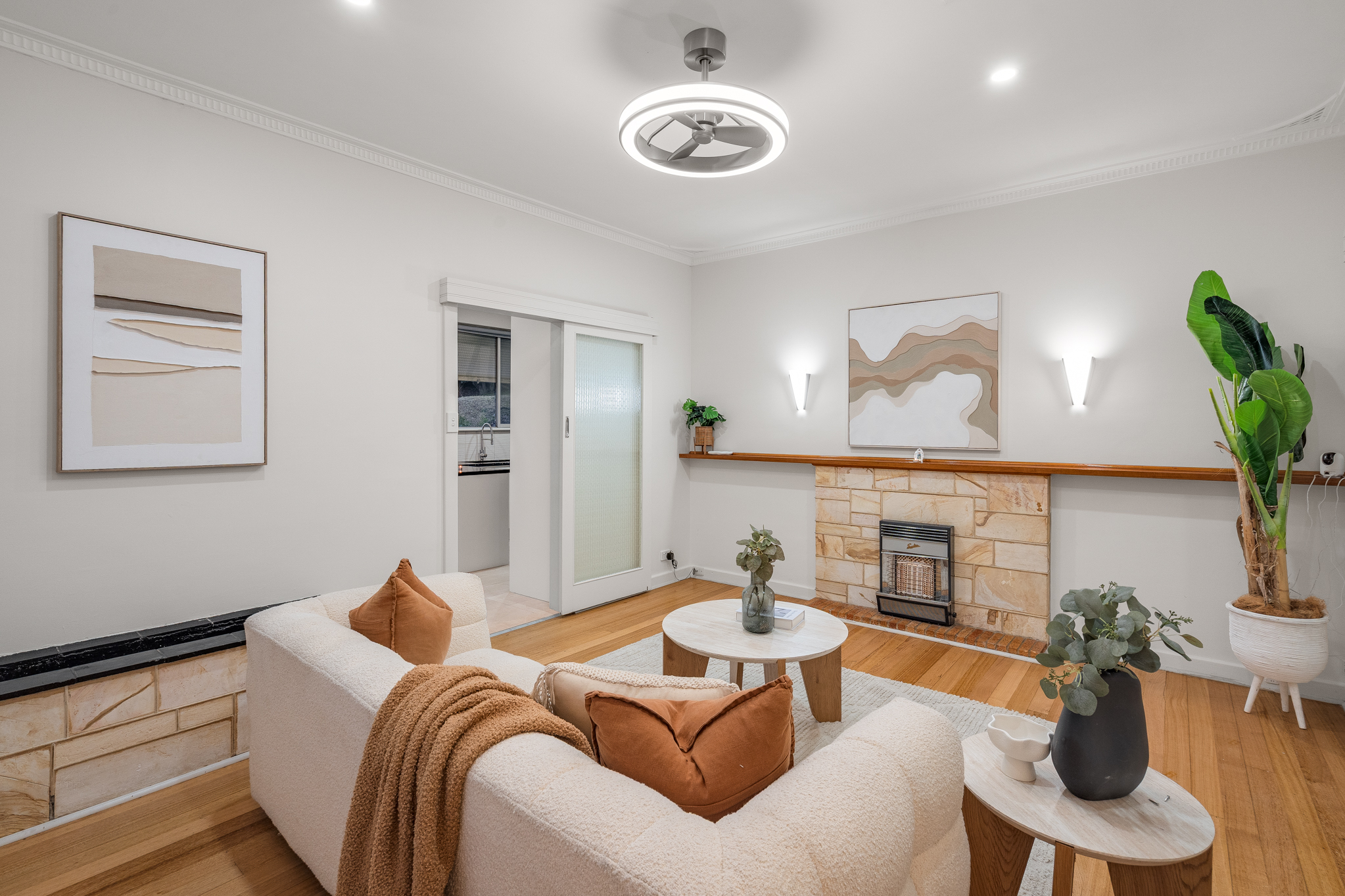 Built in enduring double-brick, the home has been thoughtfully refreshed for modern living. A wide central hallway and lofty 2.8m (approx.) ceilings create an immediate sense of scale, while three well-proportioned bedrooms provide comfort and privacy.