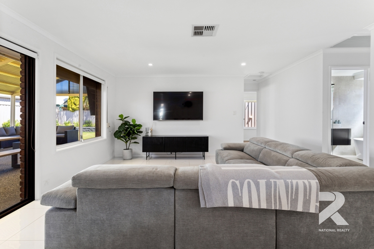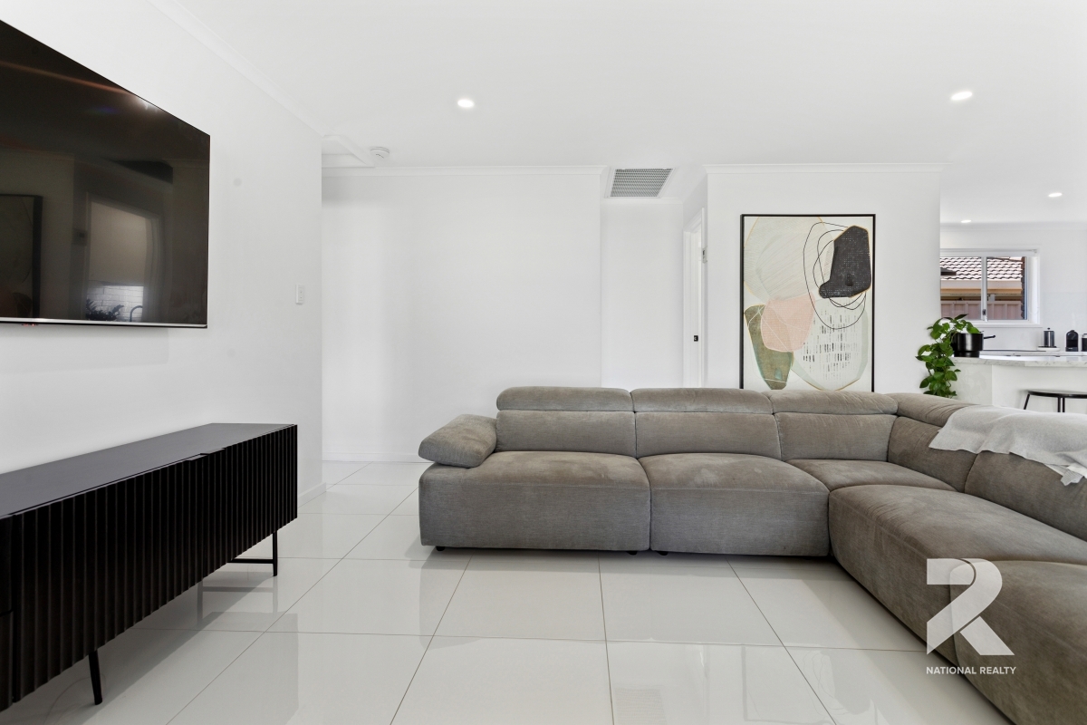 Beyond the living zones, you’ll find three comfortable bedrooms ready to become your private retreats. The master bedroom offers the additional luxury of an ensuite and walk-in robe, while the main bathroom, is updated and tiled floor to ceiling, for a clean modern aesthetic.