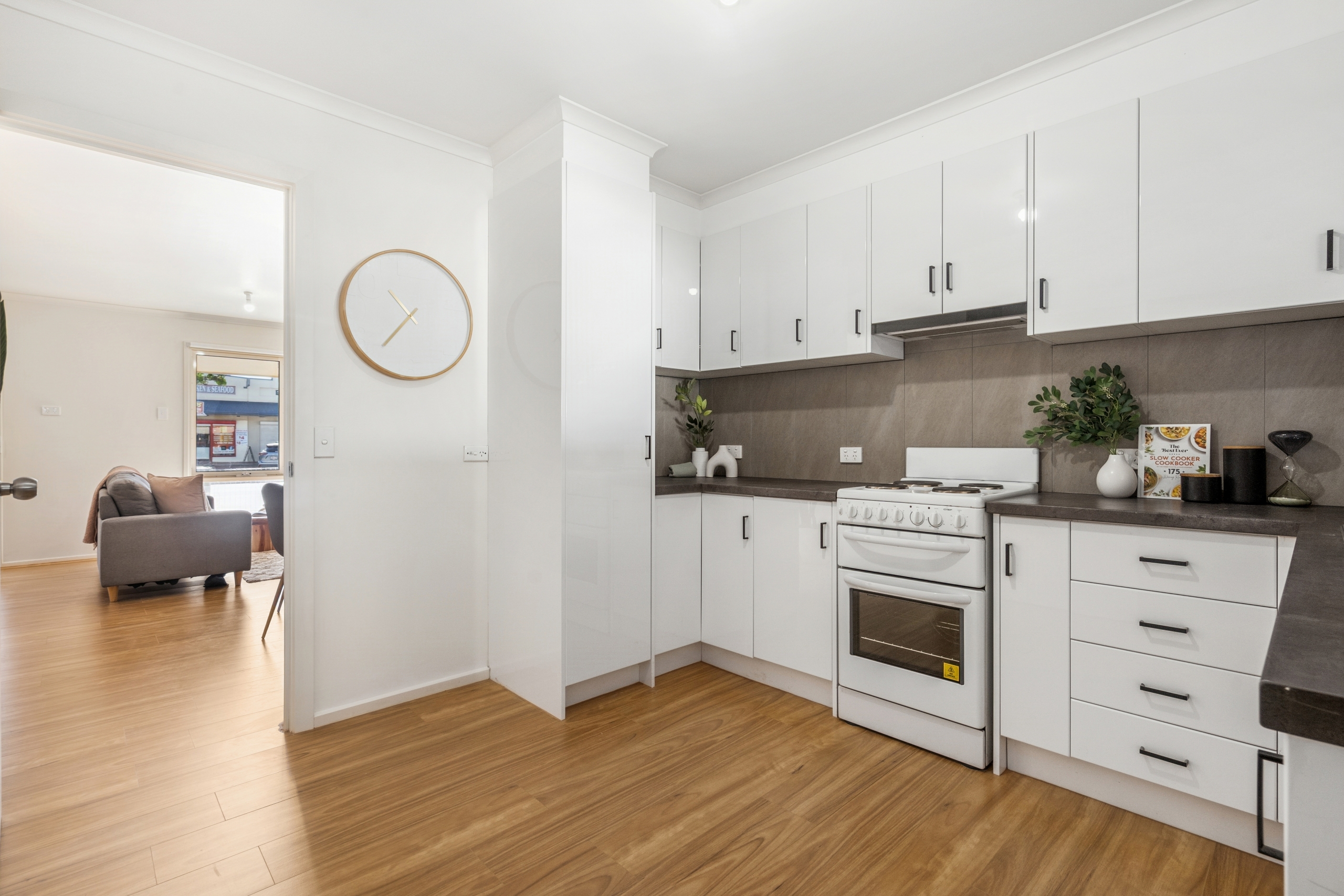 Seamlessly blending indoor & outdoor living, step inside and be welcomed by your spacious and light filled open plan living area. The kitchen features ample storage and quality electric appliances.