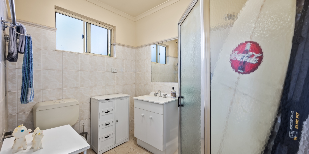 Back inside, bedrooms 1 and 2 are positioned at the front of the home, both featuring built-in robes and serviced by a stylishly updated central bathroom. At the rear, you’ll find bedroom 3 alongside the modernised laundry, which also includes the convenience of a second toilet.
