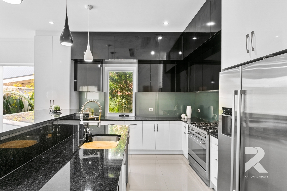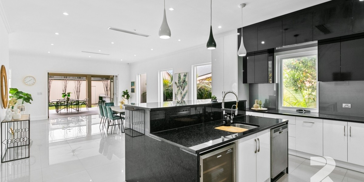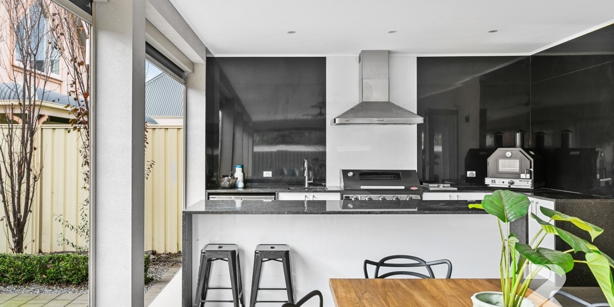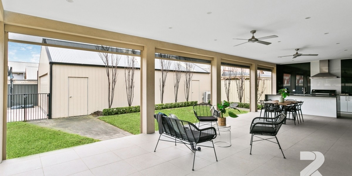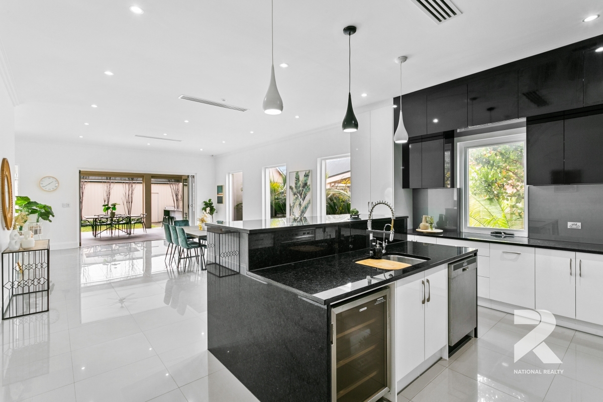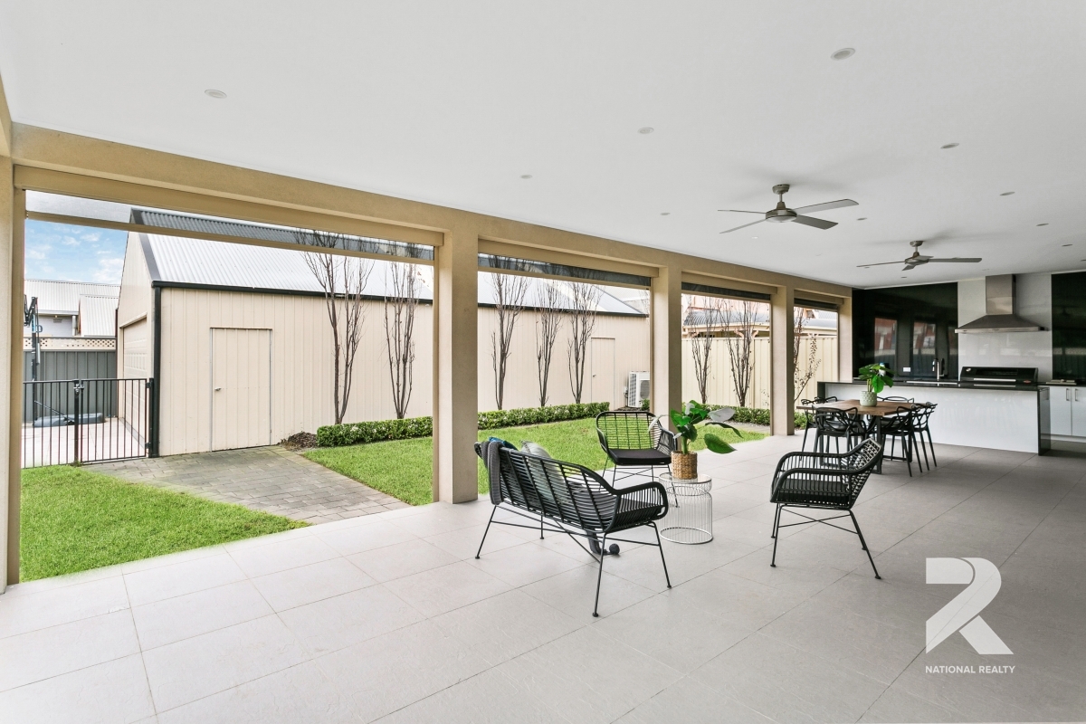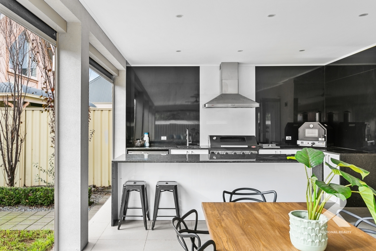 The kitchen is a connoisseur’s delight equipped with all state-of-the-art stainless-steel appliances and stone benches which overlook the family dining and meals areas. Embracing the indoor-outdoor living to the fullest capacity the open-plan lounge and dining room seamlessly flows to the private outdoor entertaining area, fully equipped with a functional kitchen, stone bench tops, bar fridges and a wood-oven pizza maker! This will make entertaining your nearest & dearest a breeze all year round with fully functioning weather-proof café blinds.