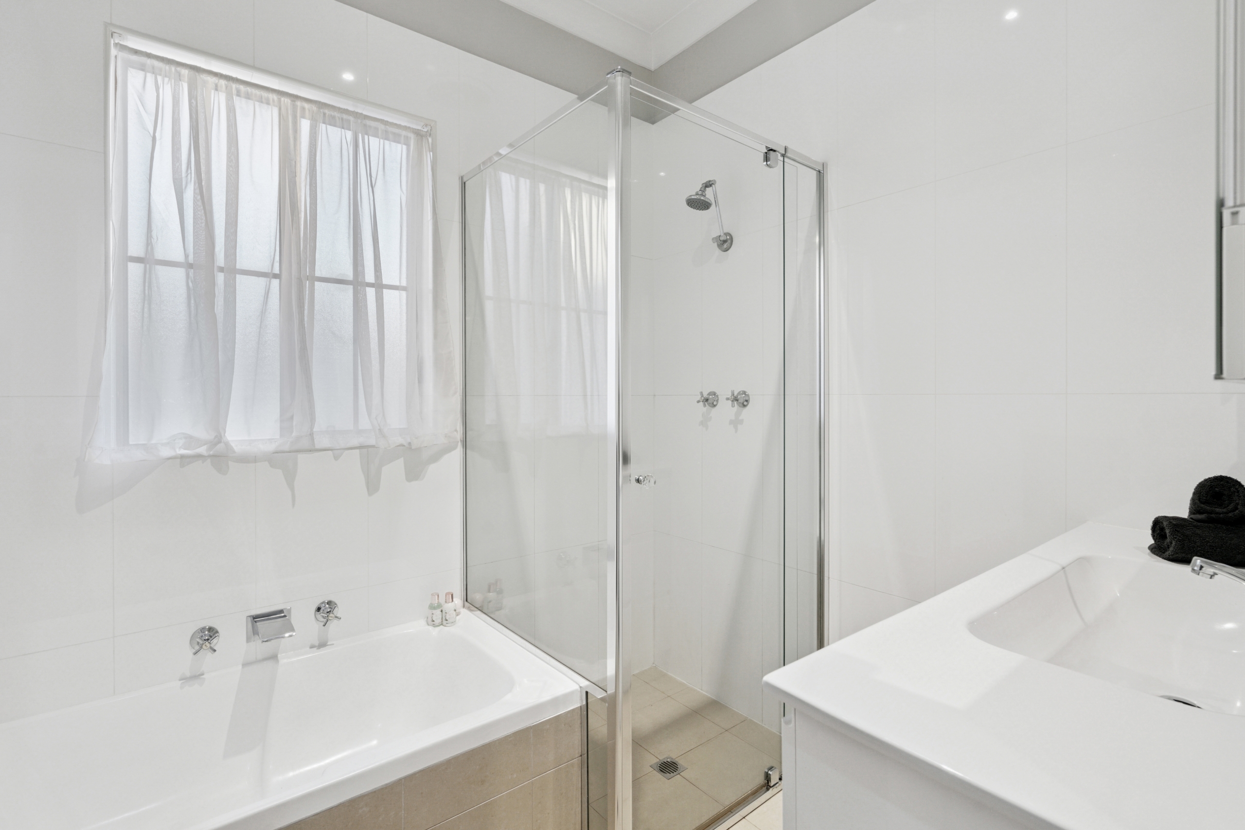 Boasting two spacious bedrooms, both fitted with built-in robes and ceiling fans, this home offers comfort and practicality. Step out from the master bedroom onto your private balcony – the perfect spot for a peaceful morning coffee or a relaxing nightcap. The modern main bathroom features both a shower and bathtub, ideal for unwinding after a long day, while a separate toilet completes the upper level for added convenience.