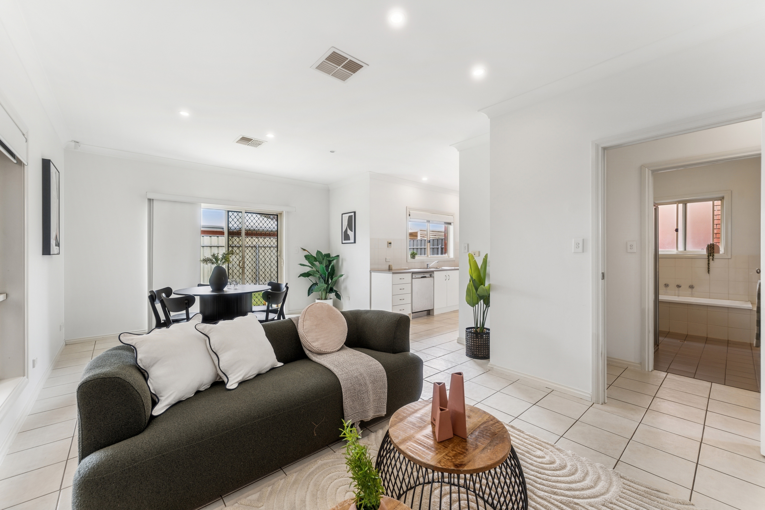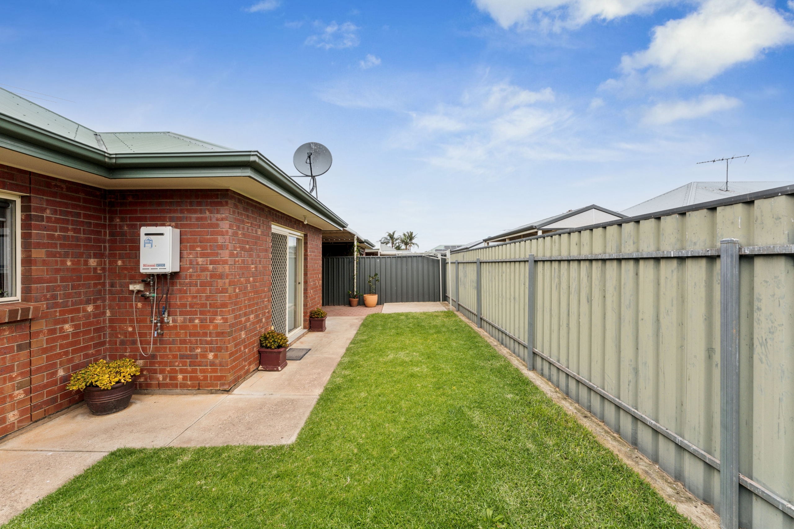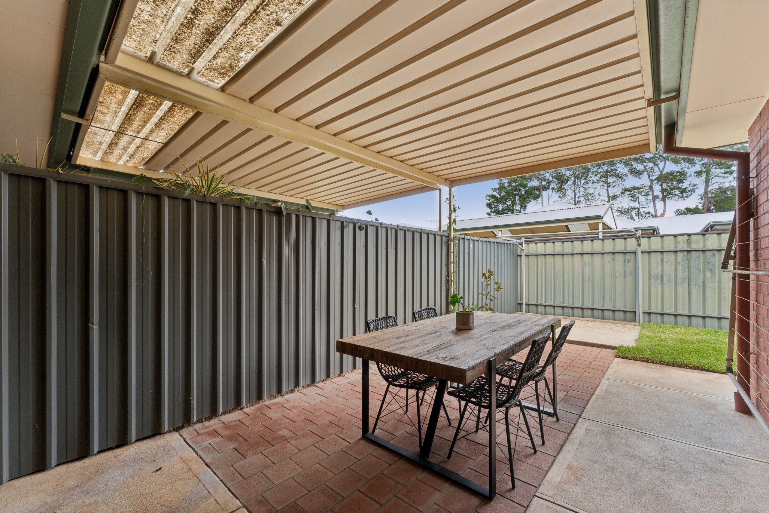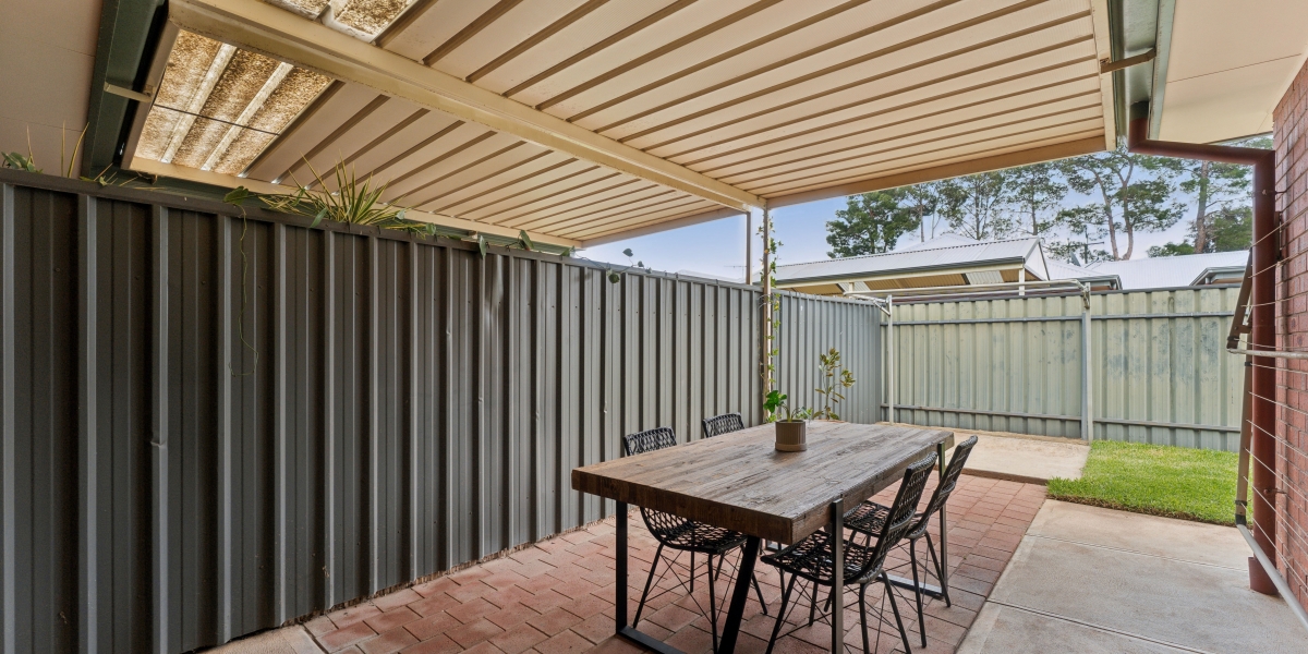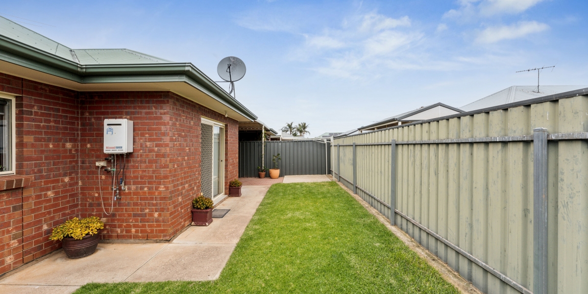 Beyond the courtyard, a neat grassed area offers space for pets or gardening, while convenient side access adds extra versatility. The property’s layout prioritizes low-maintenance living without compromising on space, making it the perfect lock-up-and-leave home.