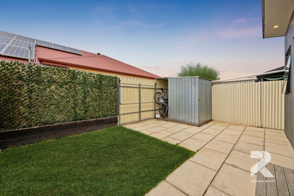 Both spacious bedrooms offer comfort and tranquillity, complete with custom-built robes and cabinetry for ample storage. Outside, a private courtyard leads to a tastefully landscaped garden and a paved entertaining area-perfect for outdoor dining or soaking up the sun. Additional storage is provided by a garden shed, ensuring everything stays neat and organised.