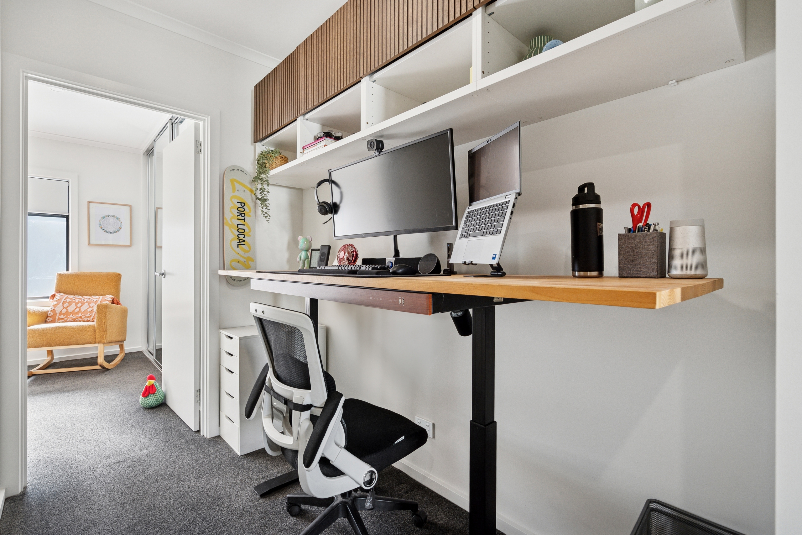 Upstairs you are initially greeted with your study which is perfectly centered between the two bedrooms.