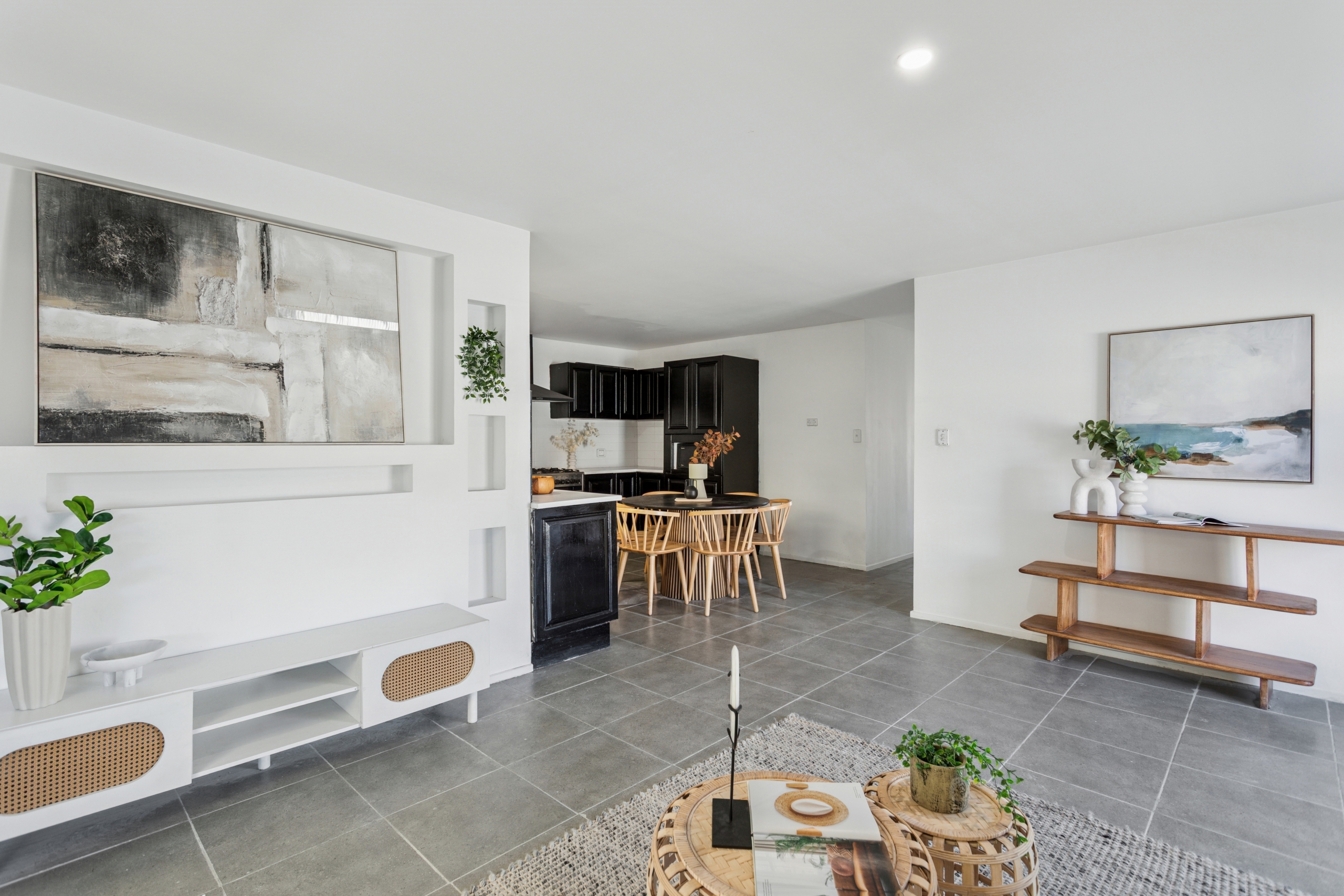 At the rear, is where you are greeted with the heart of the home. The spacious open-plan living area is ideal for both everyday living and entertaining & is complemented by your updated kitchen. Offering ample cabinetry, quality appliances including dishwasher and large 900mm oven & gas cooktop, this space will be sure to impress any culinary enthusiast.