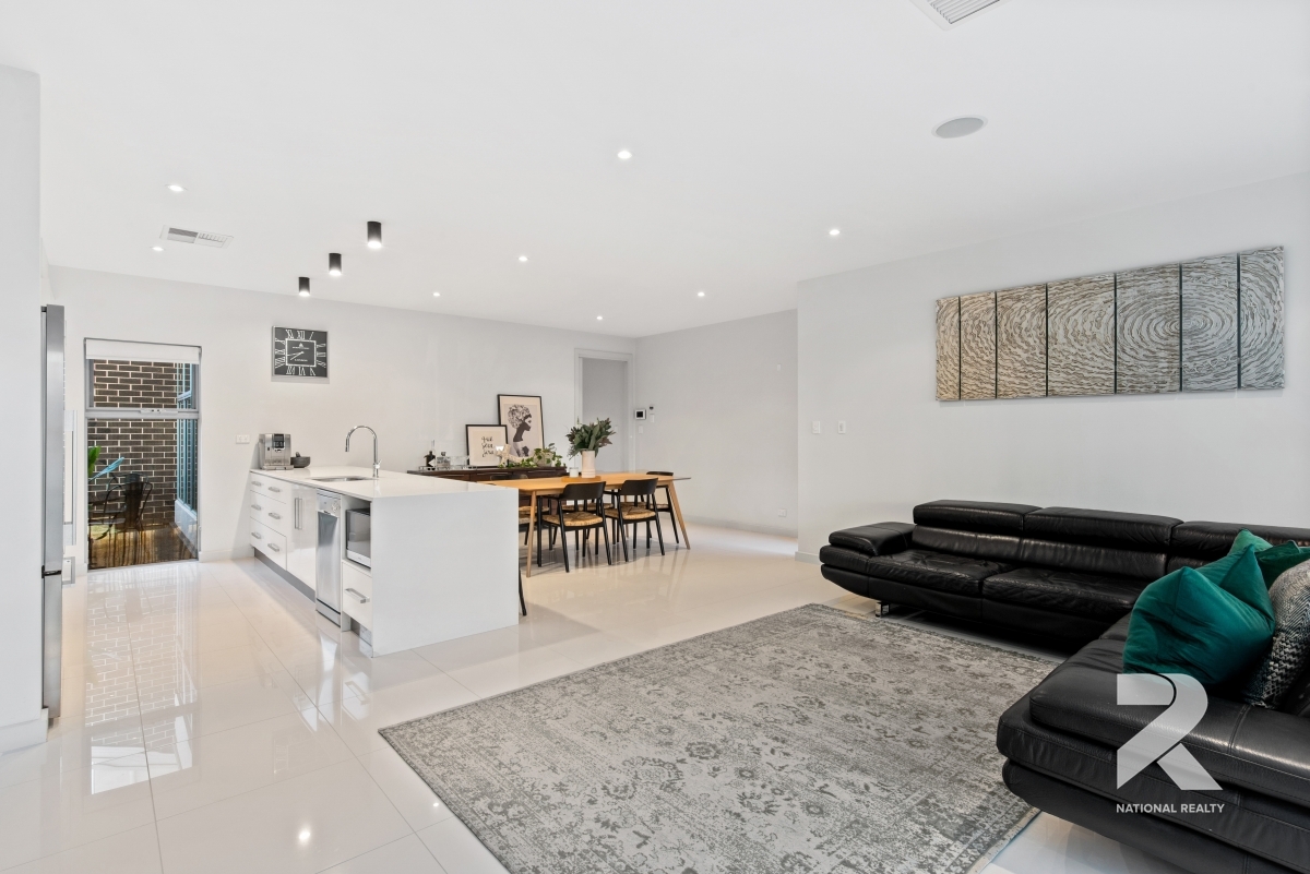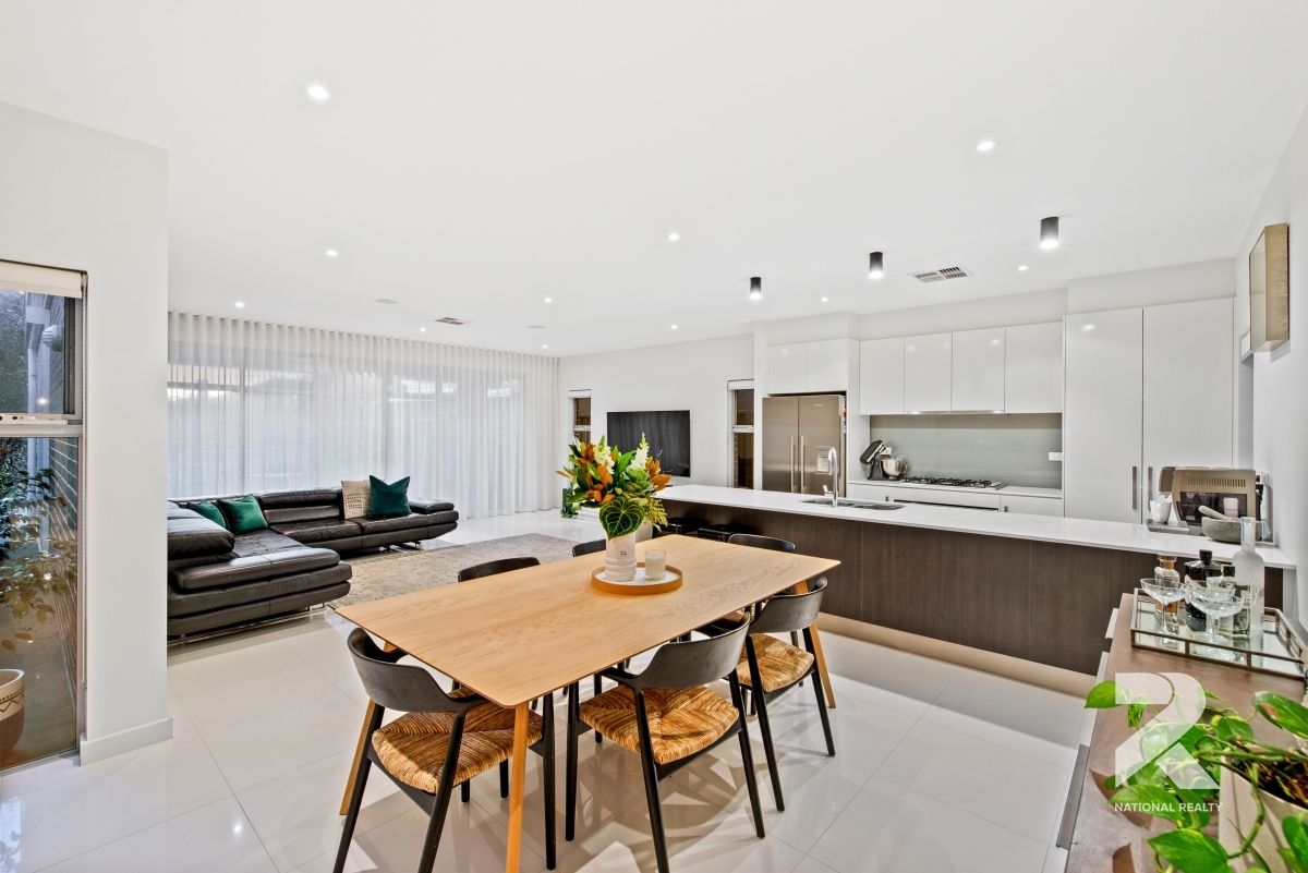 Let’s take you through…upon entrance, be taken away with the impressive wide hallway, 2.7m ceilings and follows a radiant light throughout that leads you to a spacious open plan living including the meals area. The superb kitchen to follow, featuring ample bench space, stone bench tops and stainless-steel Euro appliances and complete with dishwasher – a cook’s dream. The finishing touches and attention to detail include an alarm system together with intercom giving you ease of full security, a first-class in-built speaker system and window blinds/curtains throughout to suit this outstanding home.