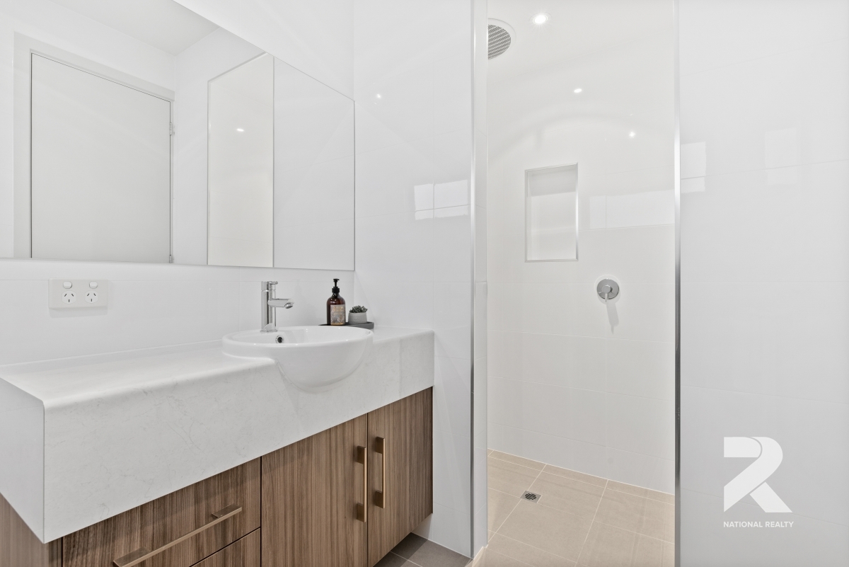 Take a walk upstairs to the grandiose master bedroom featuring a convenient walk-in closet, extra built-ins and accompanying ensuite that includes those few extra luxuries that you will fall in love with – double basin & double shower. The remaining two generously sized bedrooms all include ample storage with built-in robes. Rounding off upstairs the beautifully tiled floor to ceiling main bathroom equipped with full-sized bath.