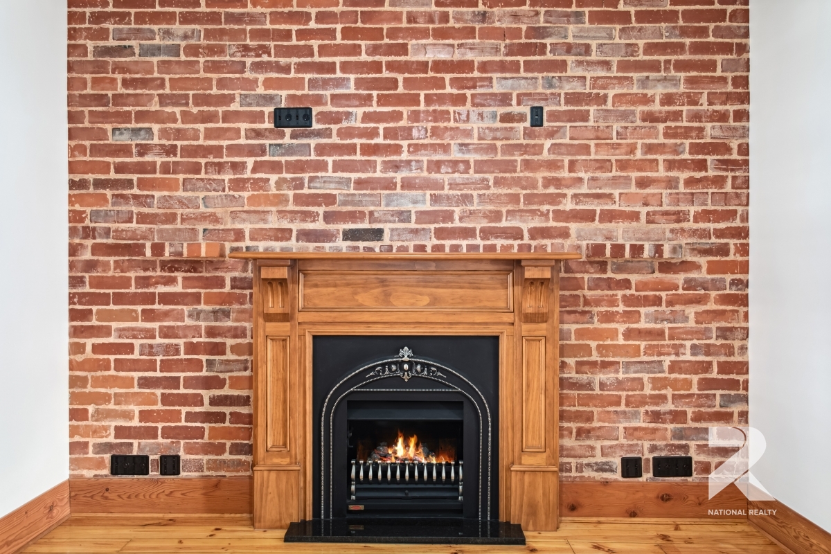 – Gas heater with an exposed brick feature wall