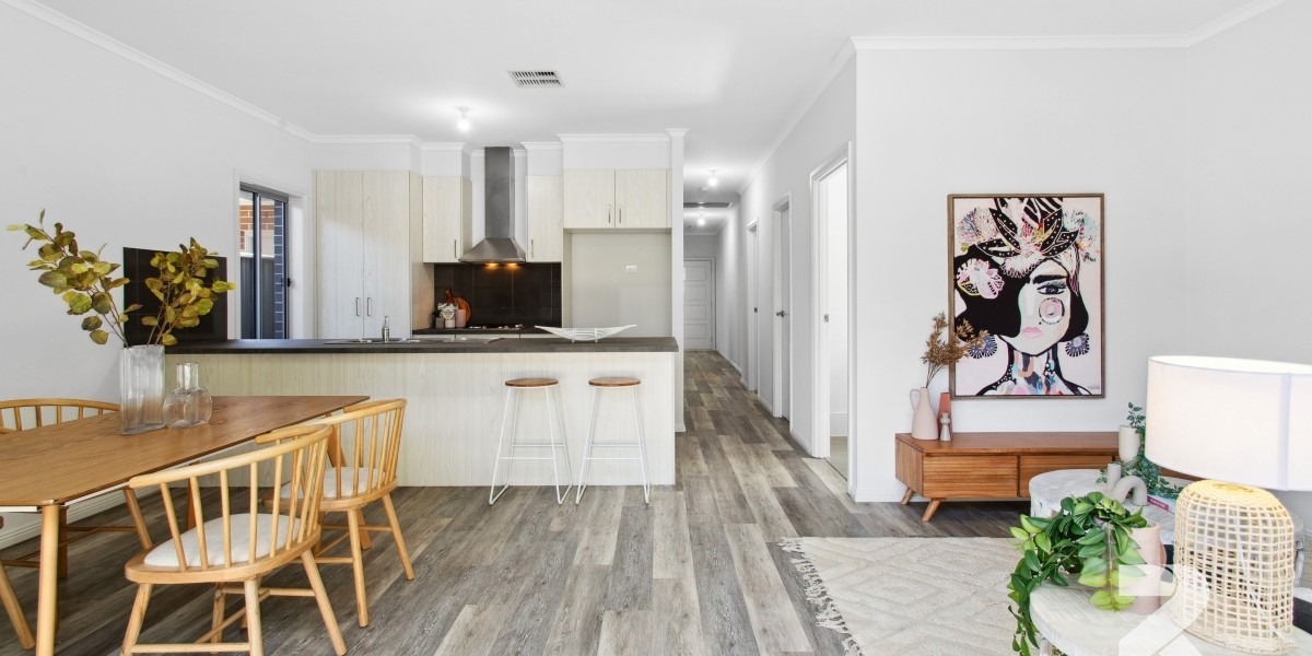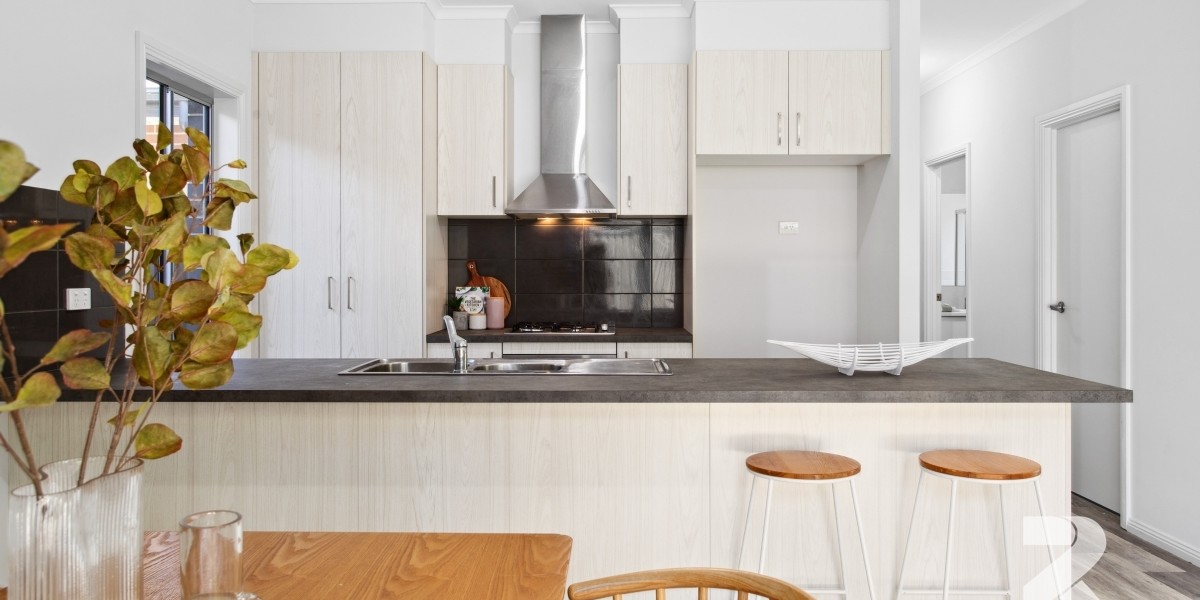 The heart of the home is found at the rear, where you are greeted with an elegant and modern kitchen showcasing ample bench space and cabinetry, which overlooks the expansive open plan living and dining area.
