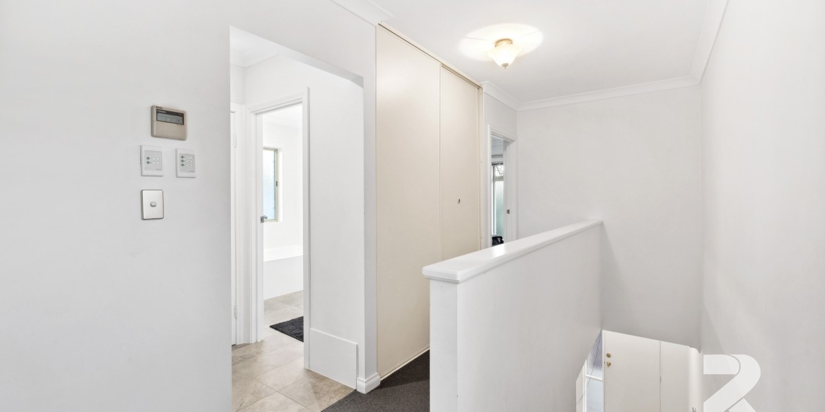 At the opposite end of the upper floor, bedrooms two and three are conveniently situated side by side, just steps away from the centrally located, stylishly updated bathroom.