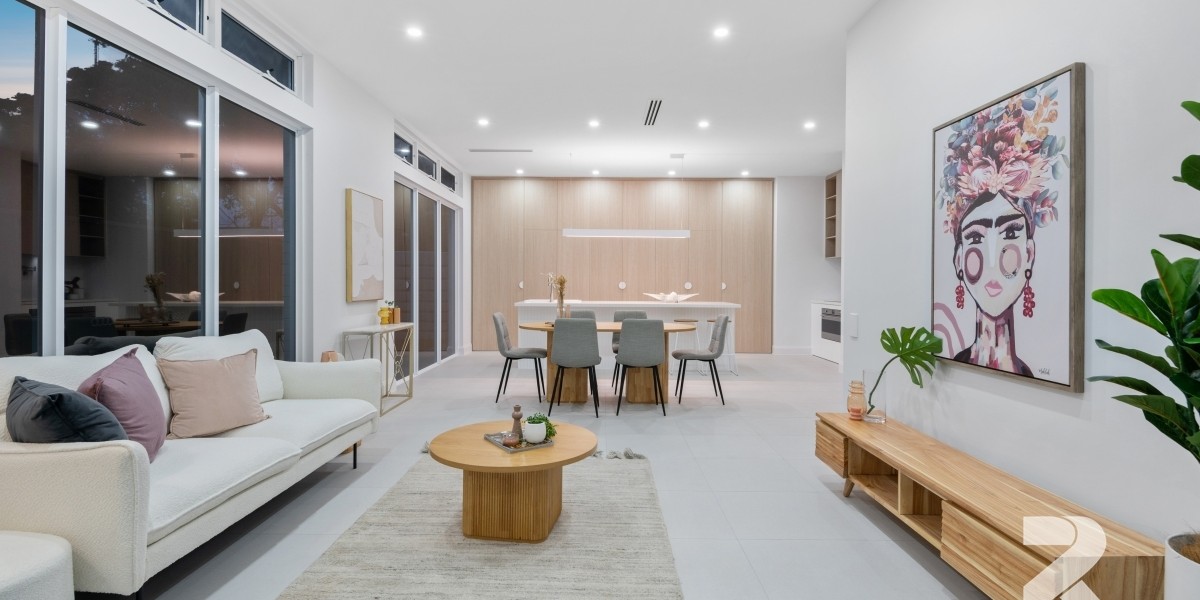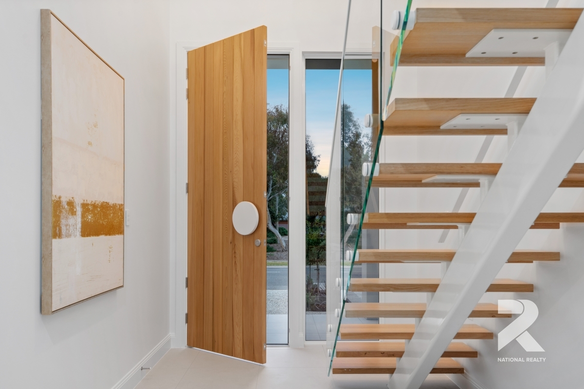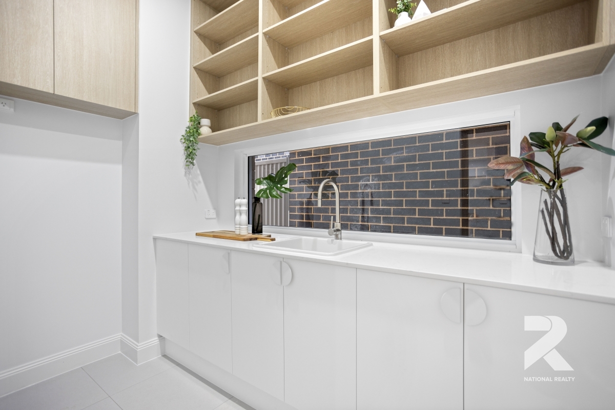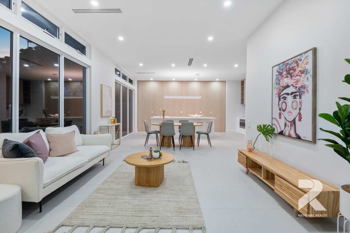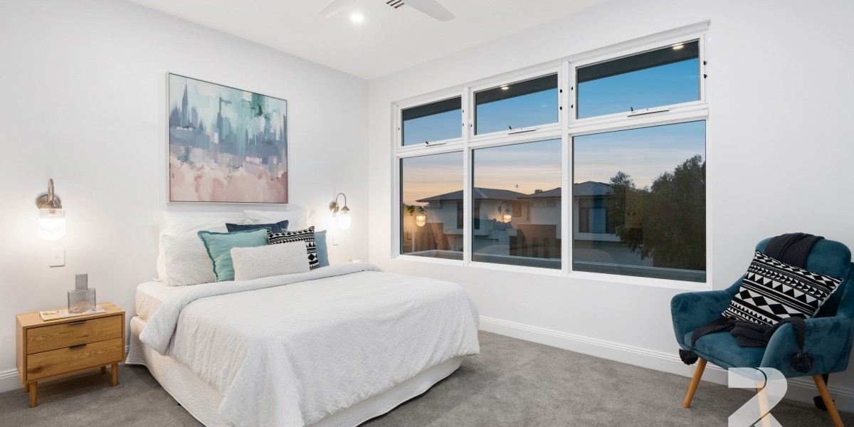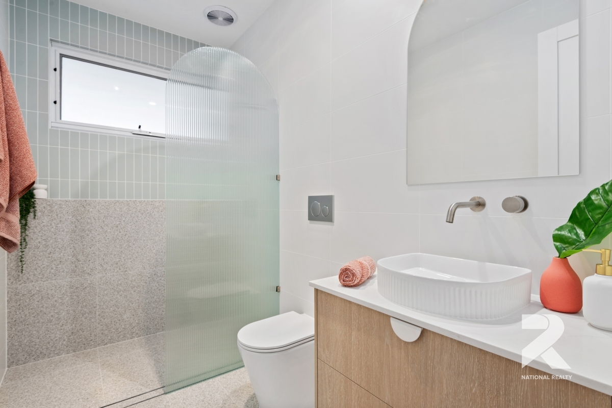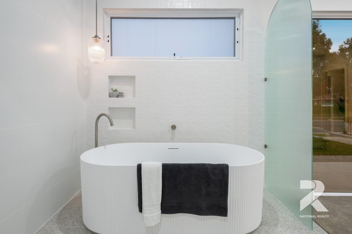 As you enter the home through the grand 3 metre high entrance door you will be instantly taken away with a feeling of grandeur that can only be described as inspiring. Located on the ground floor next to the stunning white spine and glass staircase is the master bedroom featuring a raised free-standing bath that has been purposely built to give you a day-spa feel in the comfort of your very own home. Walking through the robe leads to the ensuite with twin basins and LED mirrors giving this Master Bedroom that finishing touch only found in five-star hotels.