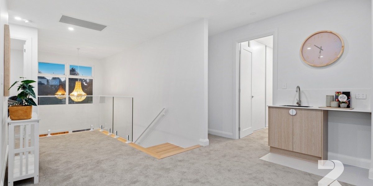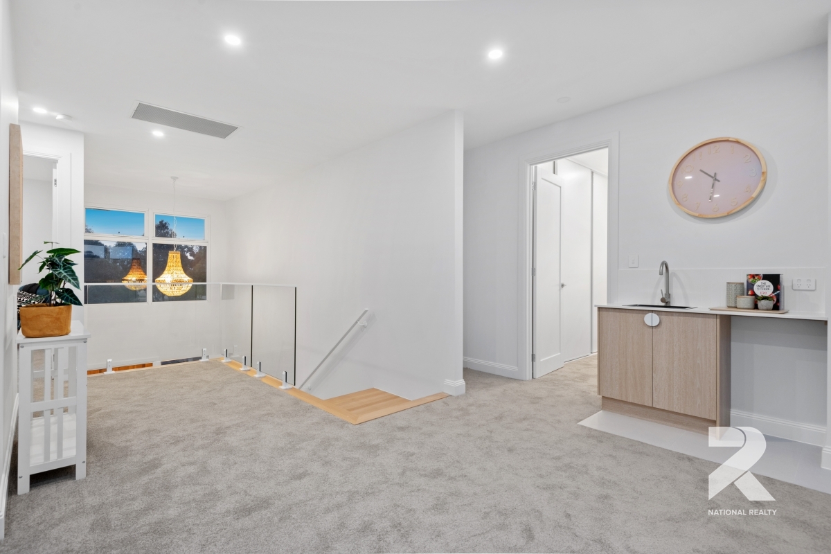 Upstairs you will find a second living area with a convenient kitchenette. There is also a SECOND master bedroom with walk-in-robe and ensuite which sets this home apart from all the others – offering stunning park views and giving you the option for a complete guest room or preference of fitting your own living requirements for a lifetime. The 3rd and 4th bedroom come with built-in robes and are located on either side of the main bathroom for convenience.
