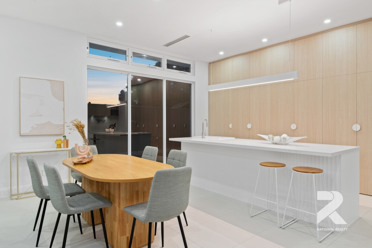 When entering the open plan living, dining and kitchen area the expectations are satisfied far beyond what one could imagine. The kitchen consists of SMEG appliances and a separate pot filler for ease of cooking, there is a hidden butler’s pantry with refrigerator and sink facilities with endless cabinetry and stone benchtops to complete this truly amazing kitchen.