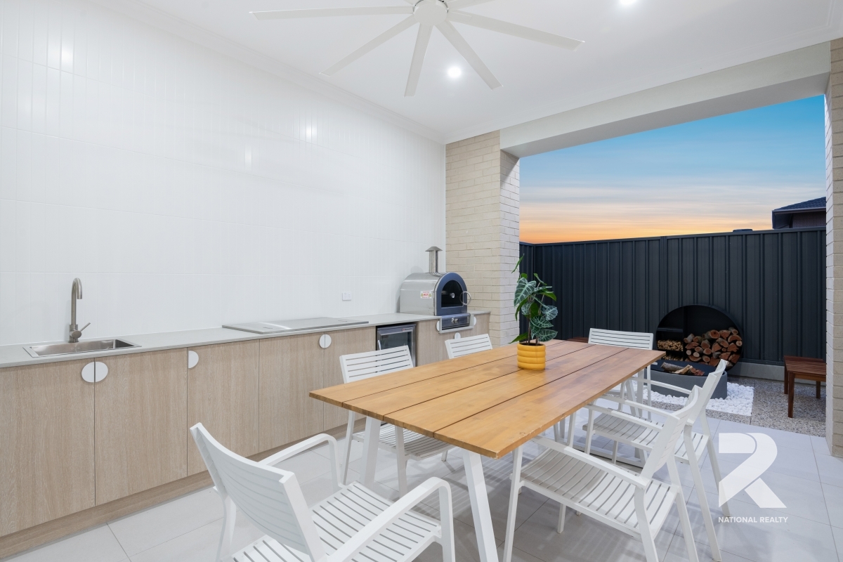 Stepping through the stackable slide doors leads you to the terrace that is an entertainer’s delight, this area also has cafe style doors opening to the double garage giving you further room for those large family get togethers, this alfresco is the perfect area to relax with family and friends on a hot summer night or for the colder months enjoy the fire pit that will keep everyone warm and cosy to give you all year round comfort in style.