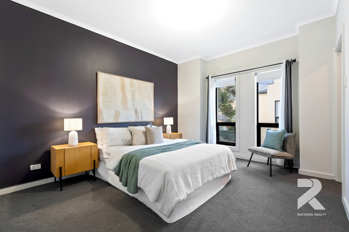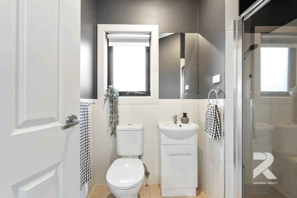 Adjacent to the main living area, the three bedrooms offer an inviting retreat. The master bedroom, in particular, features an ensuite bathroom and walk-in robe, while the remaining bedrooms are equipped with built-in robes. A separate laundry lends functional ease to everyday living.