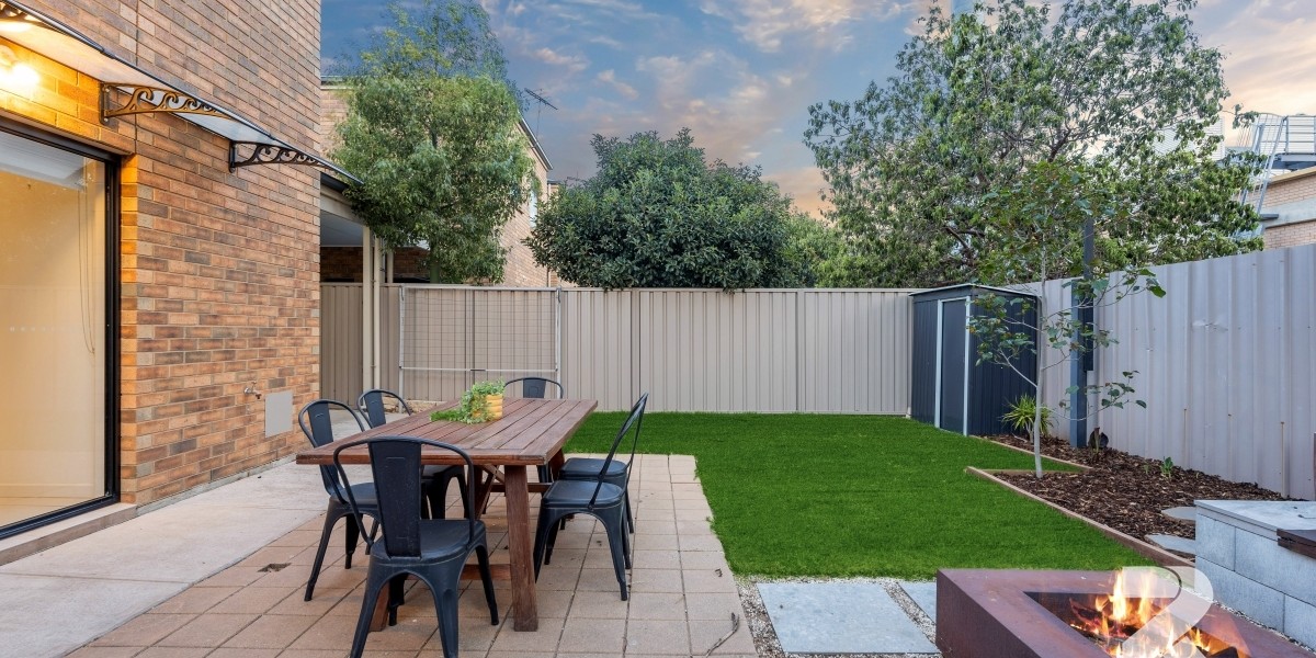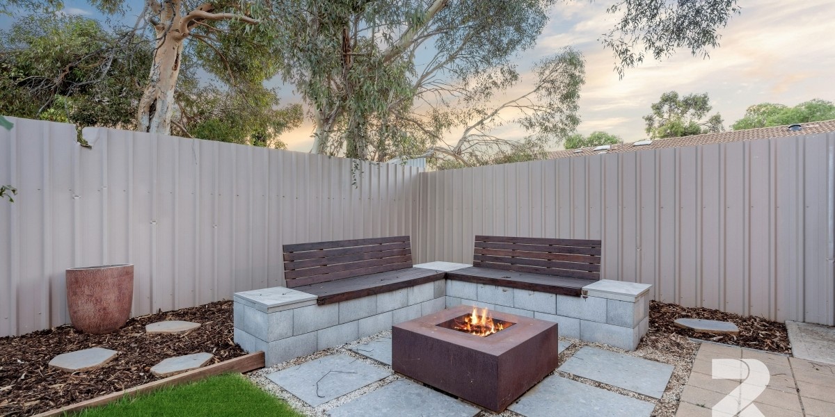 Outside, the landscaped gardens coupled with an outdoor fire pit serve as an entertainer’s delight, perfect for hosting or simply winding down after a long day. A lock-up garage and a patio complete this home’s practical features.